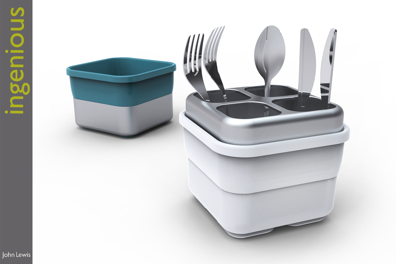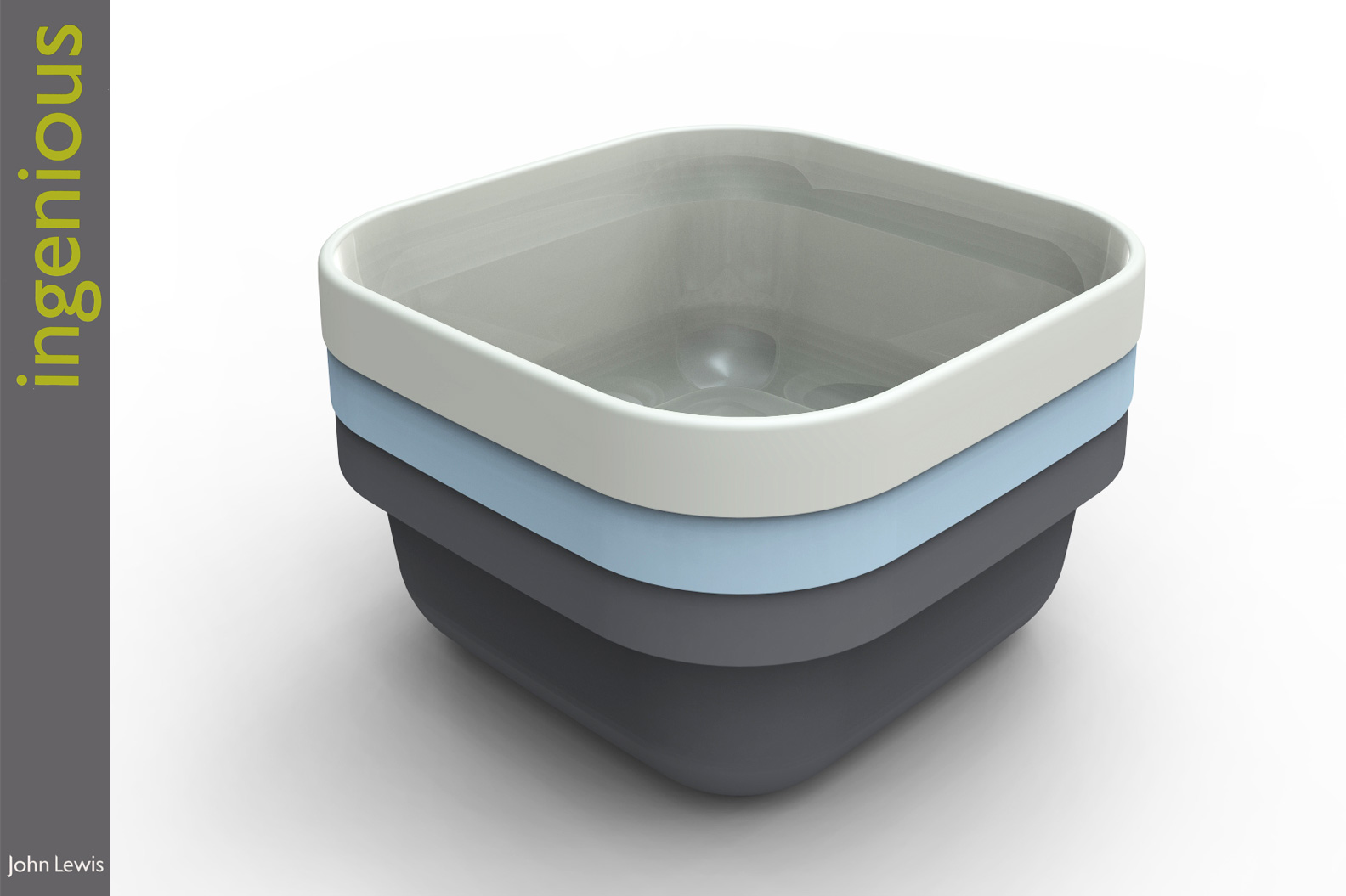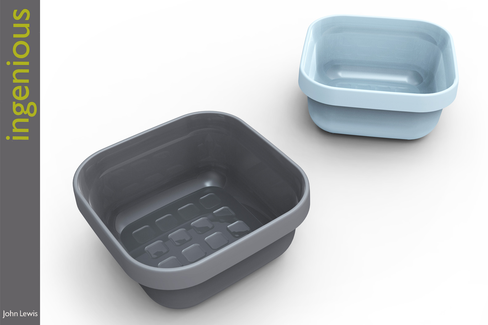 Tulett Design was commissioned to design the ‘ingenious’ range of kitchen sink side products in a minimalist geometrical style and clean pastel colours.