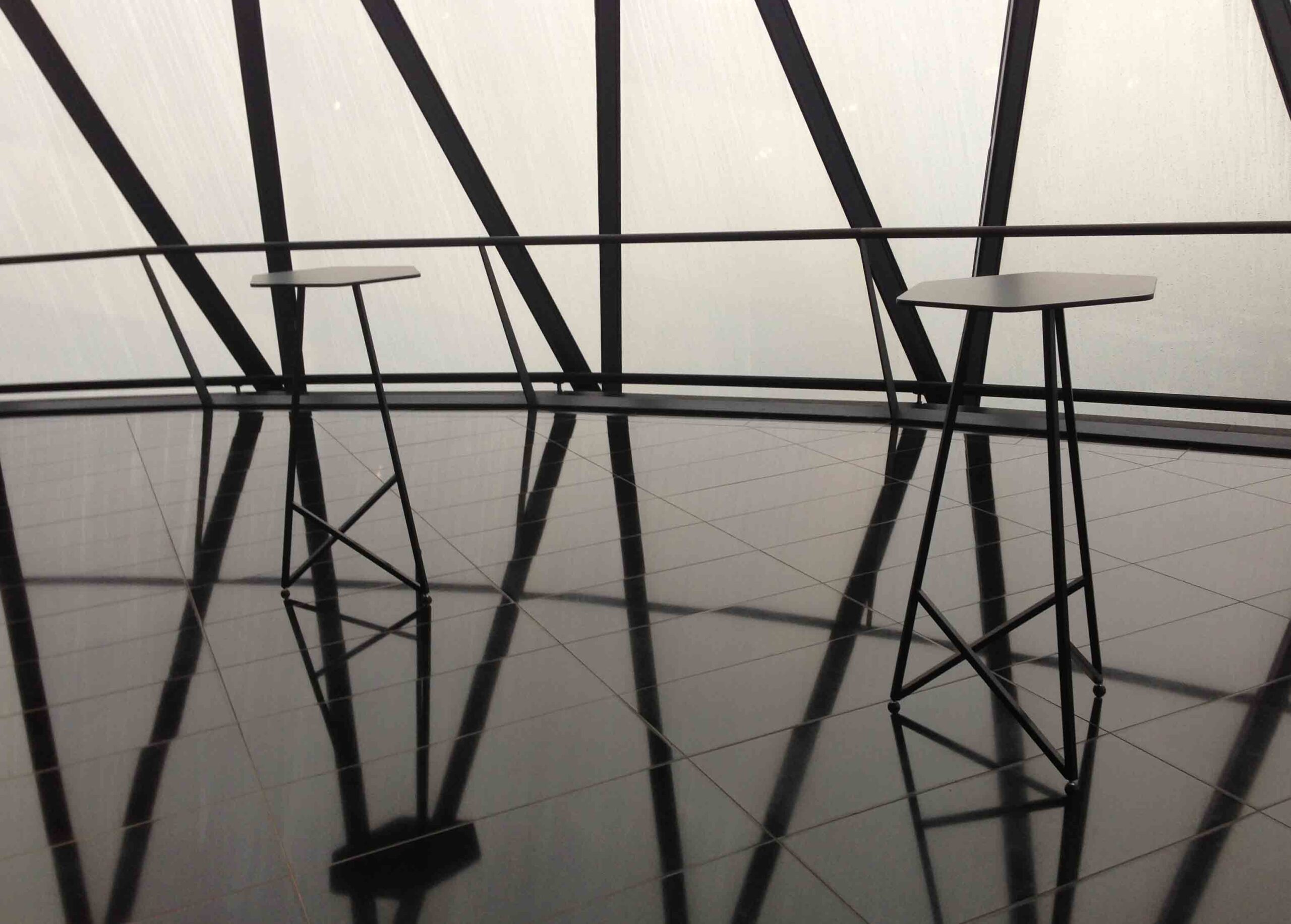 Commissioned for use in creative events, the Hexagonal Poseur Table has a striking angular structure which also makes it robust and practical. The three‐leg base is designed for maximum stability on most uneven surfaces and the hexagonal top allows multiple tables to tessellate in various configurations to suit the event. The design of the base also allows it to stack when the top is detached, helping save storage space. The compact laminate and the zinc‐coated frame make it suitable for outdoor use.